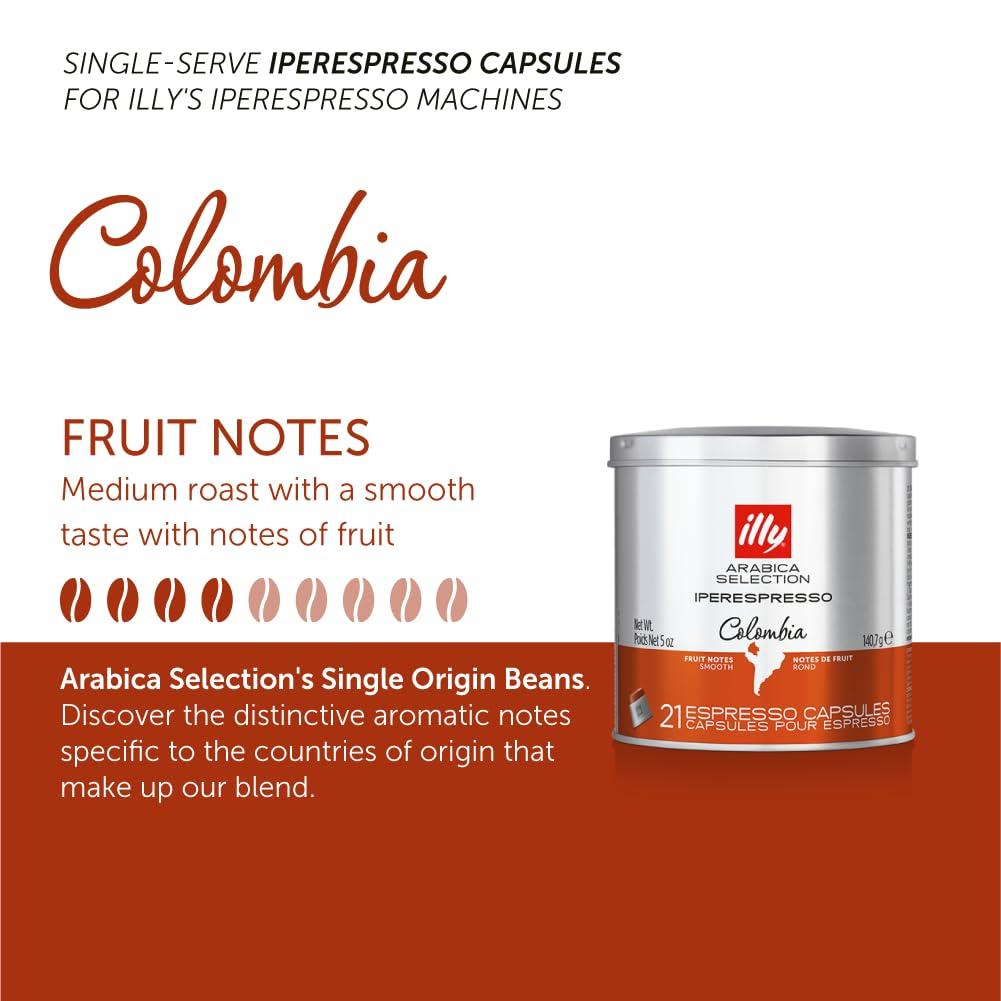 illy Coffee, Arabica Selection India Espresso Capsules, Single Origin, For Brewing with iperEspresso Capsule Machines, 18 Count(Colombia Single Origin Medium Roast)
