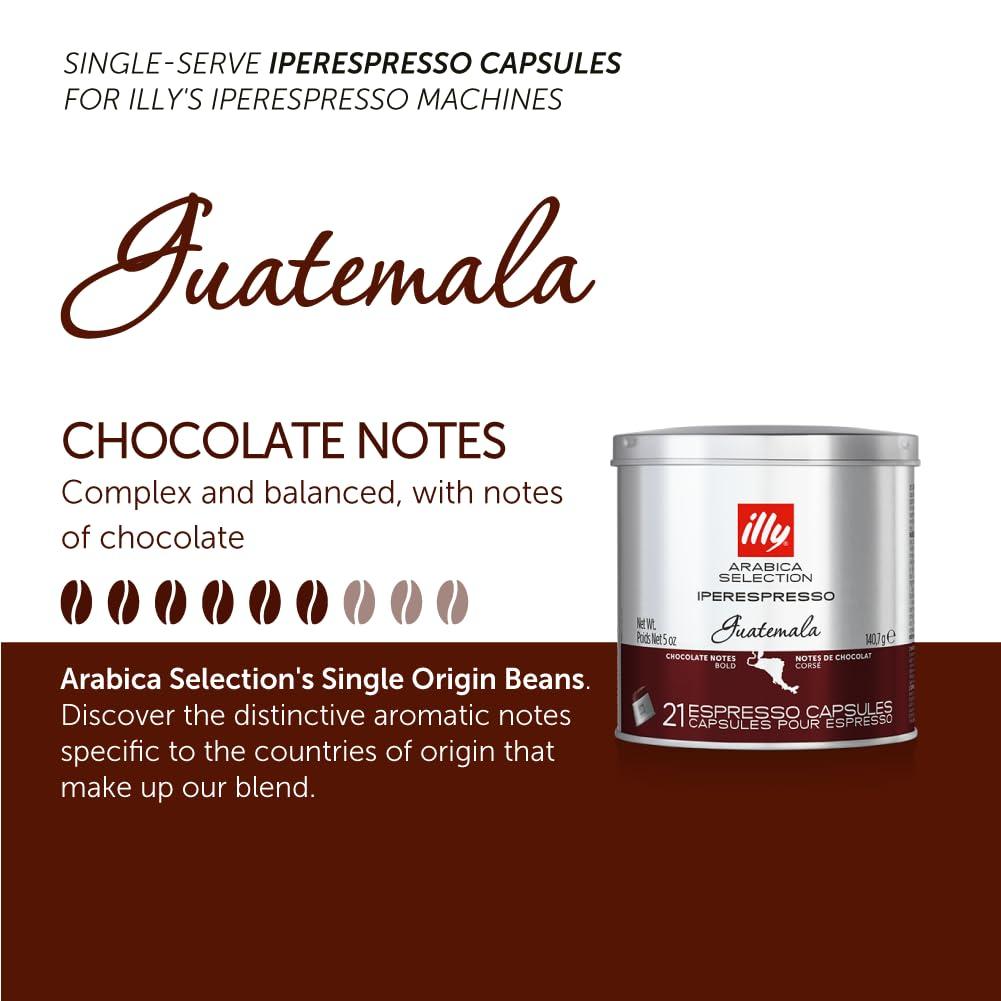 illy Coffee, Arabica Selection India Espresso Capsules, Single Origin, For Brewing with iperEspresso Capsule Machines, 18 Count(Guatemala Single Origin Dark Roast)